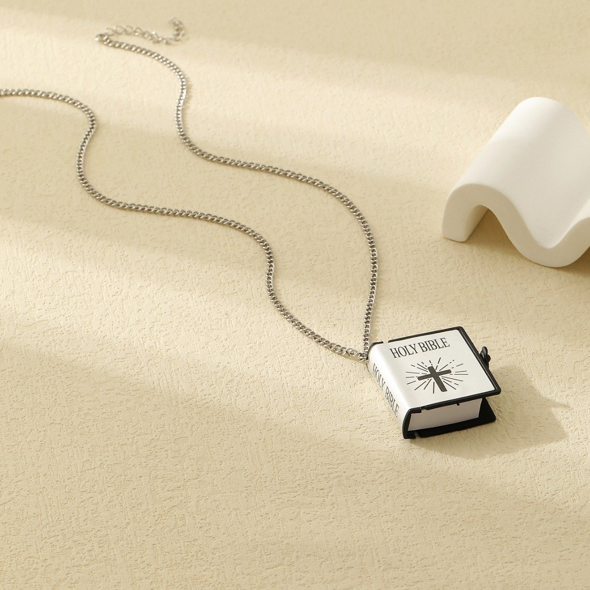 Color: gold necklace cross Bible pendant necklace one piece, silver necklace cross White Bible pendant necklace one piece, silver necklace cross black Bible pendant necklace one piece